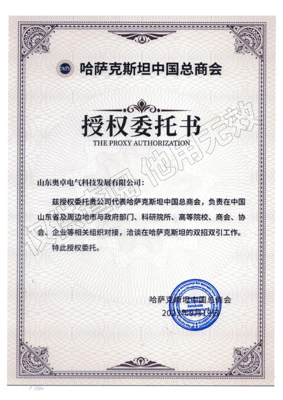 為深度融入 “一帶一路” 建設(shè),深化濰坊與中亞地區(qū)經(jīng)貿(mào)往來,在中國(guó)國(guó)際貿(mào)易促進(jìn)委員會(huì)濰坊市委員會(huì)的統(tǒng)一部署下,中亞濰坊總商會(huì)積極推進(jìn)境外布局工作。近日,中亞濰坊總商會(huì)會(huì)長(zhǎng)、山東奧卓電氣科技發(fā) ...